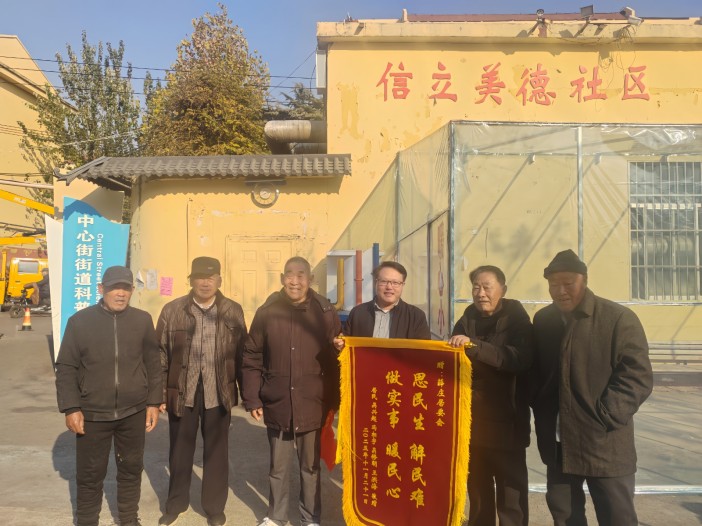 “現在天冷了能在這里曬太陽,下雨能躲雨,累了有地方坐,社區真是把實事辦到了我們心坎上!”薛莊小區居民吳大爺感慨的說。薛莊社區新時代文明實踐廣場是居民日常休閑的主要場所,但休憩設施短缺問題長期困擾著居民。尤其是老年群體和帶孩子的家長,常因無處歇腳而縮短戶外活動時間。了解到這一情況后,社區主動作為積極協調各方資源,在街道的大力支持下,緊鑼密鼓的開始施工。如今,暖心小站已正式投用,寬敞的活動空間、抗風防雨的穩固結構,搭配同步配備的休閑桌椅,為居民打造集遮風擋雨、休憩交流于一體的“暖心小站”。小站啟用當日,便有居民自發送來“思民生解民難,做實事暖民心”的錦旗,表達對社區工作的信賴與認可。