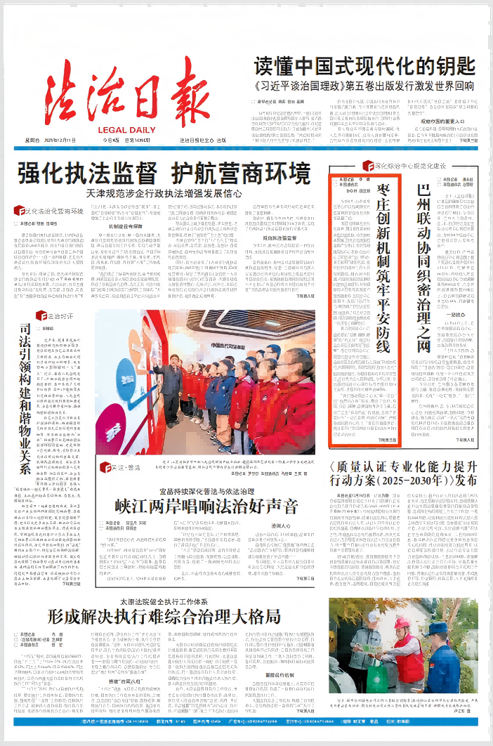 近日,《法治日報》聚焦棗莊,頭版刊發我市創新機制筑牢平安防線經驗做法。