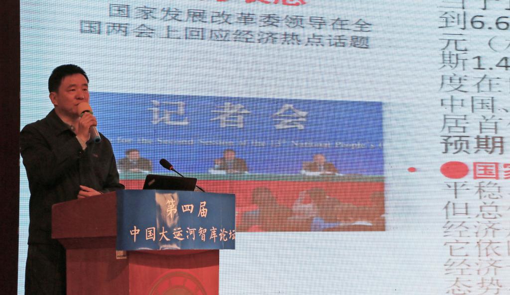 論壇第三階段是中國大運河智庫2019年春季報告會。報告會由王佳寧教授主持。山東省社科聯黨組副書記、副主席周忠高教授,青島大學黨委書記胡金焱教授,北京物資學院副校長何明珂教授,四川大學公共管理學院院長史云貴教授分別作了題為“充分挖掘和發揮大運河山東段的歷史文化資源優勢”“關于經濟形勢幾個問題的思考”“普惠金融發展中的‘兩難’問題與對策建議”“物流供應與供應鏈管理”“城市綠色治理能力:概念、要素、體系與運行”的精彩主旨報告。