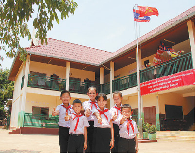 孩子們在中老友好農冰村小學新校舍前開心地合影 中老友好農冰村小學校長苯妮拉著記者的手,快步走進辦公室,拿出一封信,興奮地說:“真想不到習近平主席會給我們回信,全校師生都無比高興和自豪。我們太幸福了!” “我們將心中所感落到紙上,匯成文字,寫就了一封致習近平主席的信” 苯妮同時拿出的,還有當時擬就的致習近平主席的信,滿滿4頁A4紙。她說:“學校一直得到中國的幫助,我們心里有很多感激的話。這封長長的信表達了我們對中國的真誠謝意和參與‘一帶一路’建設的意愿。” 中老友好農冰村小學位于老撾萬象市占塔布里縣,原有校舍年久失修,是該縣所有小學中硬件條件最差的。2012年6月,中國和平發展基金會出資支持修建新教學樓。“2013年5月,新校舍建設完工,有一棟兩層教學樓,課桌椅、黑板、電扇等一應俱全。孩子們在‘六一’兒童節搬進新校舍,高興極了。從那時起,農冰村小學更名為‘中老友好農冰村小學’,以紀念兩國友誼。”苯妮告訴記者。 7年來,中方累計投入資金約55萬美元,為中老友好農冰村小學提供中方志愿者、更新教學設施、添置教具等。得益于優良的硬件設施、教務管理,特別是中文特色教學,學校連續多年被評為萬象市“示范學校”“美麗校園”,成為中老友好的示范項目。