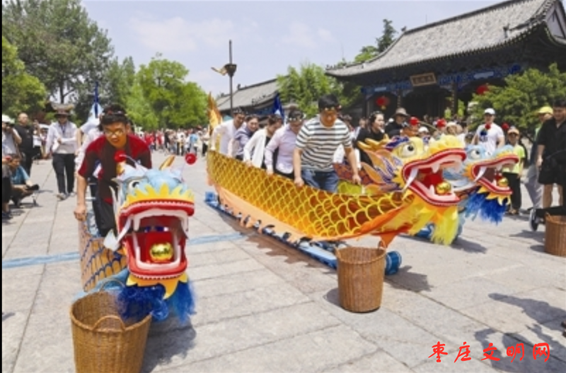端午節期間,第三屆中華端午文化節在臺兒莊古城舉行。該活動以傳承和弘揚大運河文化為宗旨,以沿運城市傳統非遺項目為載體,開展形式多樣的非遺項目展演。