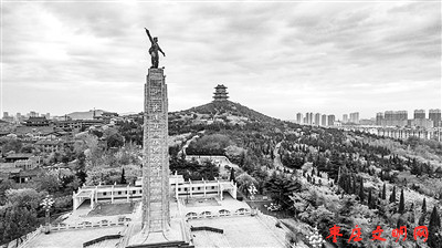 近日,記者來到薛城區鐵道游擊隊紀念公園瞻仰,看到公園環境優雅,景色宜人,景點布局錯落有致,有涼亭、廣場、甬道、碑廊……園區中心是鐵道游擊隊紀念碑,碑頂矗立著一位游擊隊戰士持槍沖刺的雕塑,碑底座兩側鑲嵌著花崗巖浮雕,再現了當年游擊隊員英勇殺敵的場面。登上公園的主峰臨山閣,可東望棗莊新城,西觀微山湖美景,薛城全城美景盡收眼底。