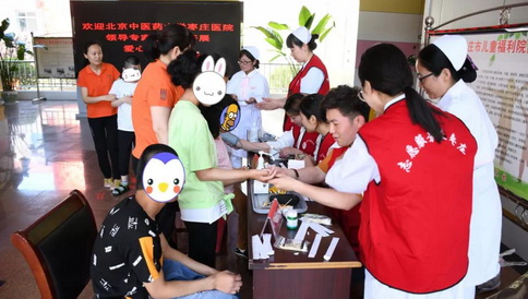 上午義診開始時,孩子們在工作人員的引領下走了過來,孩子們看到醫師們的到來,表現得極為新奇和興奮,紛紛圍了過來。孩子們對醫師們的儀器設備,包括聽診器、視力檢查牌表現出極大的興趣,醫務人員詢問基本情況,孩子們都仰起頭一臉的天真爛漫,志愿醫療隊的成員內心也感慨萬千,本該天使一般的孩子,因為身心缺陷而失去正常孩子童年的體驗。每一項體檢大家都耐心地為孩子做,并將結果反饋給了兒童福利院工作人員,并告知了一些基本的健康宣教知識。