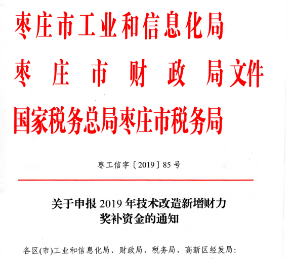 近日,棗莊市工信局、棗莊市財政局和棗莊市稅務局聯合發布《關于申報2019年技術改造新增財力獎補資金的通知》(以下簡稱《通知》),將對新舊動能轉換“十強”產業等重點發展領域進行技術改造新增財力獎補工作。