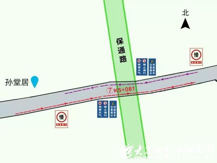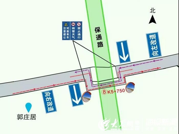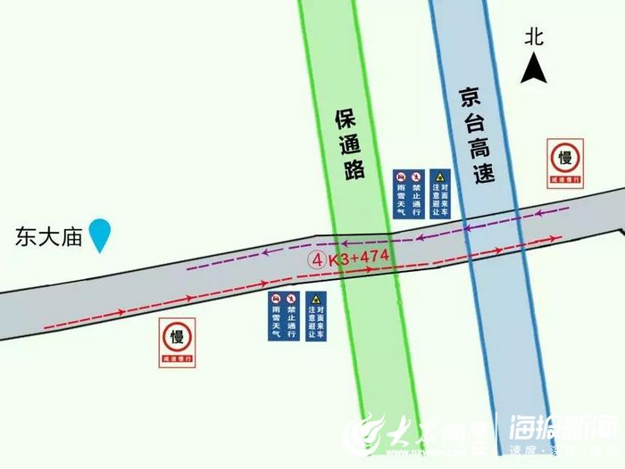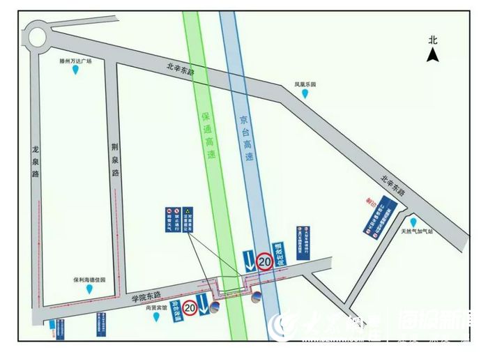 7月28日,因京臺高速滕州高架橋段保通路工程建設需要,京臺高速公路滕州段改擴建工程建設指揮部發布《關于京臺高速滕州段保通路部分平交路口半封閉施工的通告》,將在2019年8月3日至8月31日,對與保通路相交的S241、學院東路、東大廟生產路、荊河東路、孫堂生產路、郭莊生產路進行半封閉施工,禁止大中型車輛通行,小型車輛按指示標識通行。