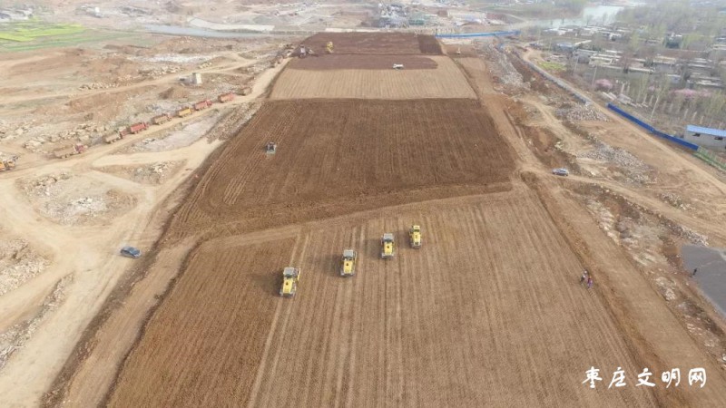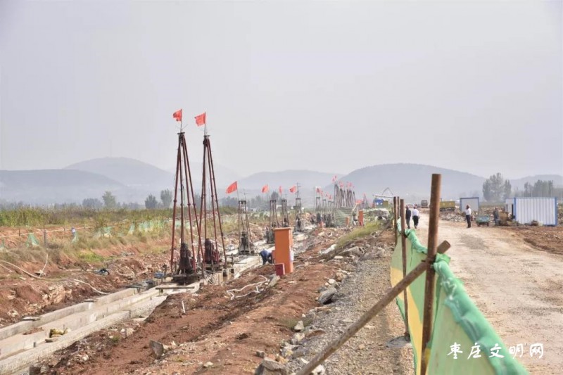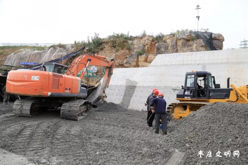 沿著一條蜿蜒的河流前行,莊里水庫工程項目地,到處都是井然有序、一派繁忙的場景,水庫大壩兩旁的壩肩已經初步成型。