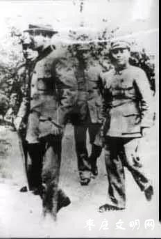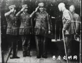 臺兒莊大戰期間,蔣介石到徐州巡視,李宗仁、白崇禧、李品仙在長官部門口迎接。