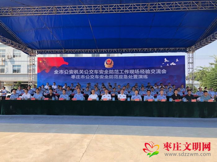 16日,棗莊市公交安全防范應急處置演練在市中區舉行,棗莊市公安機關就公交車安全防范工作進行經驗交流。