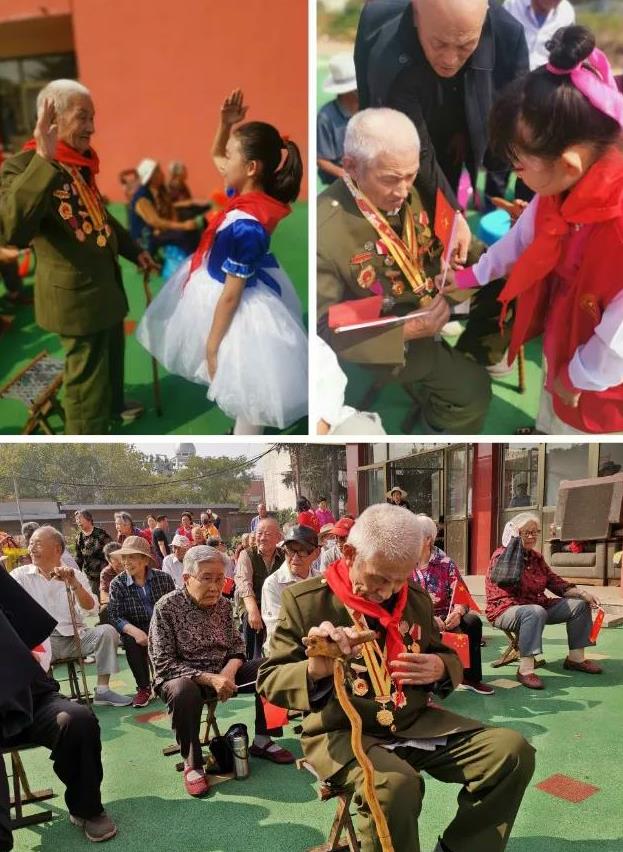 在參加活動的老人中有一位是參加過抗日戰爭的老紅軍。在這個特別的日子里,他一身戎裝佩戴了畢生的榮譽獎章前來參加此次活動。隊員們紛紛為他送上了少先隊最崇高的禮贊,眼里充滿了對這位老英雄的敬佩。