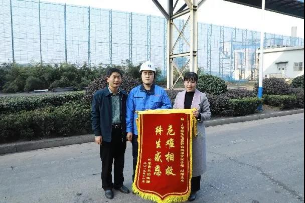 11月4日,棗莊二十九中小學部教師張勇和愛人時榮霞,帶著寫有“危難相救,終生感恩”的錦旗,專門來到濰焦集團薛城能源公司,親手將錦旗送給了機電車間員工劉剛,感謝他危急時刻伸手相救,并向救命恩人劉剛連聲致謝。