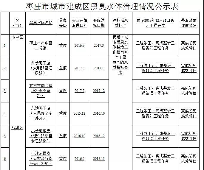 截至2019年底,9條黑臭水體已全部治理完成,完成總投資約1.58億元。9條黑臭水體全部通過第三方初見成效評估,具體情況詳見附表。