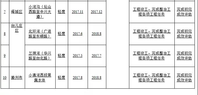 經(jīng)排查,我市城市建成區(qū)共有9條黑臭水體,總長度23.49公里,面積0.782平方公里,分別是市中區(qū)東沙河下游(人民路——東外環(huán))水體整治工程、二號渠改造工程、西沙河下游(光明路——匯泉路)、齊村支流(棗曹線——建華路);薛城區(qū)小沙河東支(德仁路橋——長江路橋)、小沙河西支(天安步行街——天山路橋);臺兒莊區(qū)蘭祺河南段(華興路——臺北路)、北環(huán)河(廣進路——東順路);嶧城區(qū)小河溝(壇山西路至中興大道)。