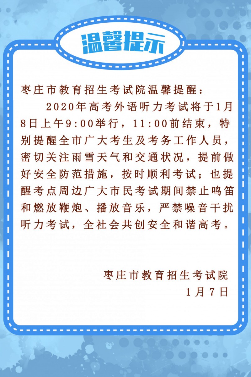 山東夏季高考聽力考試將于明日進行,希望考生們注意交通安全,做好保暖措施。