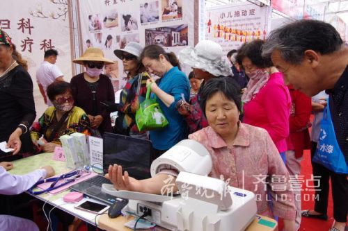 13日上午,還未到活動(dòng)開幕時(shí)間,光明廣場上已經(jīng)擠滿了慕名前來的市民。700余平米的展示規(guī)模,眼科、體檢中心、中醫(yī)科、內(nèi)科攤位前“熱鬧”非凡,周圍扎滿了人,以中老年人居多,甚至有些免費(fèi)多功能檢測項(xiàng)目前排起了長長的隊(duì)伍。今年63歲的張女士開心的告訴齊魯晚報(bào)·齊魯壹點(diǎn)記者,最近血糖降下來啦,手也不脹了,就是有時(shí)會心慌,“平時(shí)小病小痛也不舍得掛號去醫(yī)院,趁現(xiàn)在專家都免費(fèi)給看,我得去問問專家去!”