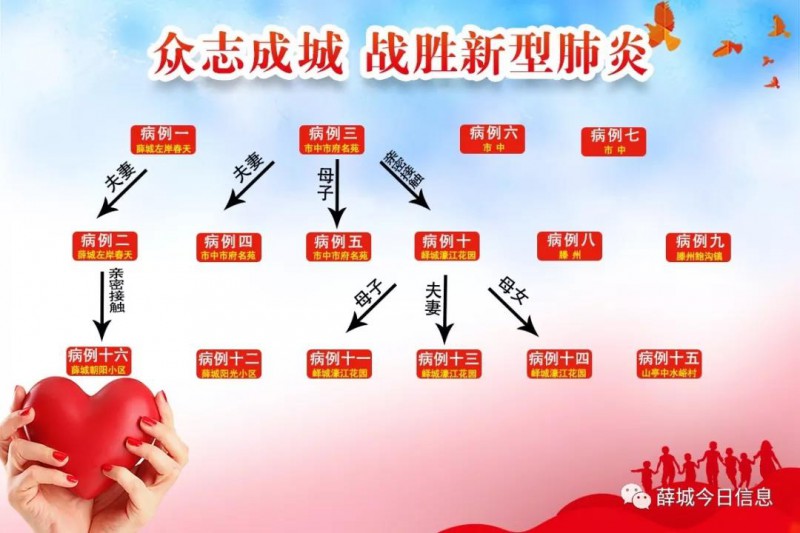 薛城區左岸春天西區 1月11日-16日,參加逍遙戶外組織的34人旅行團赴泰國旅游。 11日乘坐大巴至徐州,經徐州飛抵曼谷(航班號分別是9C 6205),途經芭提雅, 16日曼谷飛徐州(航班號分別是9C 6206),乘坐大巴于下午2時返薛城。 17日早,晚在沿河公園遛狗,在小區門口超市購物,具體接觸人員不明。 18日未外出,晚8點左右開車去高鐵站接老公后返家。 19日出現咳嗽,20日下午出現發熱,帶口罩,無明確外出。 21日至24日自述未外出。 25日去薛城區人民醫院就診,收治入院。 薛城區左岸春天西區 1月18日乘坐 1月18日從海南飛抵南京(航班號HU7021),后從南京乘G158次(座次15車13F)高鐵于晚8時抵薛城。妻子駕車將其接回家中。 20日,與大嫂付X花,侄子一起吃飯。 21日,去微山看望師母(具體信息未透漏,其自行交代師母隔離事項)。 22日,出現乏力,干咳,體溫38℃。 23日,去黃河路李時珍大藥房購買蒲地藍口服液,康泰克自服。 25日,帶口罩至市立醫院新城分院,未查,至棗礦中心醫院大廳門診測體溫不高,陪妻子至薛城區人民醫院就診時,CT檢查顯示雙肺炎癥,收治至感染科病房。 市中區市府名苑 1月20日,該患者從武漢乘坐G94次(8車09C)列車經鄭州東轉G1828次(13車15A)列車至徐州東,再乘G280次(14車15C)列車抵達棗莊 市中區市府名苑 病例3之妻,1月27日因發熱、咳嗽收入市立醫院隔離治療。 市中區市府名苑 病例3之母,1月27日因發熱伴咳嗽收入市立醫院隔離治療。 1月26日因發熱收入市立醫院隔離觀察治療。 1月27日因腹瀉就診,收入市立醫院隔離觀察治療。 1月27日因發熱等癥狀,收入滕州市中心人民醫院隔離觀察治療。 居住滕州市鮑溝鎮薛中村 1月20日出現咳嗽, 26日出現發熱癥狀, 27日收入滕州市中心人民醫院隔離治療, 居住嶧城區濠江花園 病例3的密切接觸者, 1月26日出現發熱癥狀,居家服藥。 1月30日因發熱收入嶧城區人民醫院隔離觀察治療。 居住嶧城區濠江花園 1月27日出現發熱癥狀,到徐樓社區附近的百姓大藥房治療, 1月30日因發熱收入嶧城區人民醫院隔離觀察治療。 薛城區陽光小區。 1月16日,該患者從棗莊乘坐G58次(8車07C)列車至北京, 17-18日參加北京國際酒店居然之家年會; 19日乘坐G41次(3車08D)列車由北京至泰安, 20日與同事駕車返回家中; 1月26日咽痛, 1月28日出現發熱, 1月30日入院隔離治療。 家住嶧城區濠江花園 1月22日-24日,在嶧城區金牛四期3號樓“寵愛有家”寵物店活動。 1月25日,在濠江花園小區內居住活動。 1月26日8:00-14:00,在嶧都水岸小區岳母家活動;14:00-17:00在徐樓養殖場(區中醫院北墻向西過建設路約300米)工作活動。 1月27日9:00-10:00,在金牛四期3號樓“寵愛有家”寵物店活動。 1月28日11:00-12:00,在榴園鎮洪樓村李某華家活動。 1月29日-30日21:20,在濠江花園小區內居住活動。 1月30日21:20,因發熱,由“120”救護車送至嶧城區人民醫院感染科隔離觀察治療。 家住嶧城區濠江花園 1月22日-25日上午,在濠江花園小區內居住活動。 1月25日16:00-17:00,乘私家車到市中區貴誠購物中心購物。 1月26日,在濠江花園小區內居住活動。 1月27日15:30-16:30,在嶧城區宏學路臺灣書城購書、承水路VIVO手機店購買耳機。 1月28日-30日,在濠江花園小區內居住活動。 1月30日21:20,因發熱,由“120”救護車送至嶧城區人民醫院感染科隔離觀察治療 山亭區山城辦事處中水峪村 1月22日,乘坐D2190車次01車廂08F座到合肥,轉乘G126車次04車廂14C座,于當日14時08分,在棗莊站下車。 15時左右,坐朋友車到達君山路小學旁邊的榮華里米線店。之后到達市中區解放路1818臺球廳,直到晚上7時左右。 晚上7時左右,到達解放路棗城往事飯店聚餐,聚餐結束后,到達市中區江北綠城小區對過的有友棋牌室,至23日凌晨5時離開。 1月23日凌晨5時,到達市中區棗莊市永興大酒店8320房間,至下午2時左右,先后到市中區三角花園附近屈臣氏、中天步行街北頭的藥房、興安街和榮華里交匯處藥房、十八中加油站對過的羊湯館,飯后又到東井組團小區及小區進門路北的三家藥店、路南的兩家藥店,其中一家叫人民藥店的去了三次。隨后,又到中天步行街中間一家采耳店采耳,最后到達華山路漢庭賓館。 1月24日中午回到山亭,先到水泉鎮云峰山村路口路南的超市購物,然后回到山城辦中水峪村其三叔家。分別在下午2時、5時左右到村口的超市買過東西,后到爺爺張某柱家中坐了一會,24日晚在三叔家中用餐。 1月31日,出現發燒并伴有稍微發冷、肌肉酸痛等癥狀,就診于山亭區人民醫院。 16、女,48歲, 薛城區朝陽小區 病例1密切接觸者 1月31日出現發熱, 2月2日入薛城區人民醫院隔離觀察治療, 2月3日診斷為確診病例。