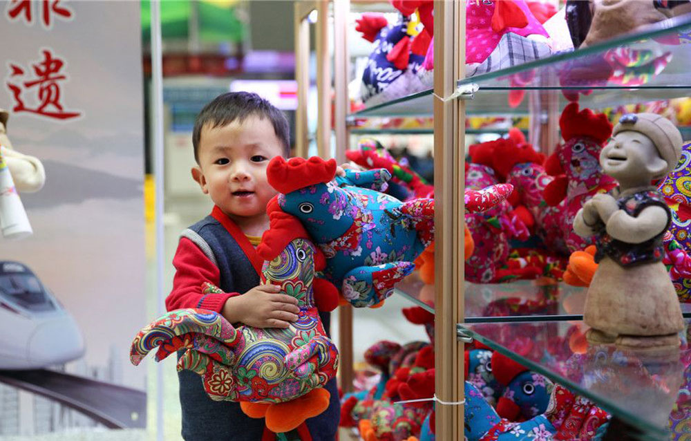 小朋友對布雞玩偶愛不釋手。濟南鐵路局今年要打造“文化春運”,讓文明出行伴隨旅客。
