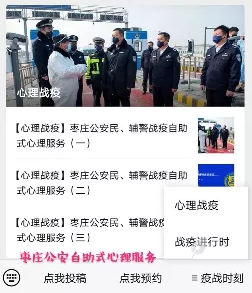 關(guān)注“棗莊公安康健驛站”公眾號(hào)后,點(diǎn)擊公眾號(hào)頁(yè)面右下角“疫戰(zhàn)時(shí)刻”欄目。