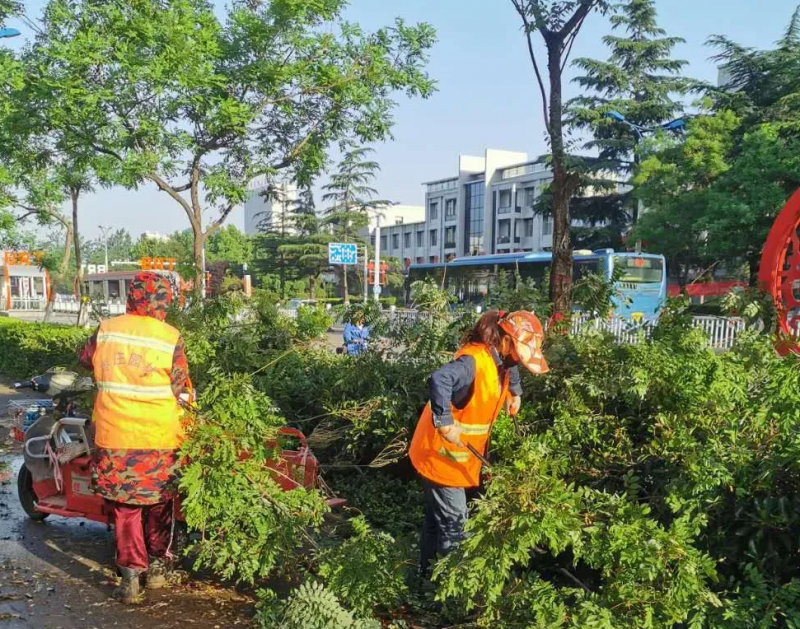 清理十六中南校對(duì)面被風(fēng)吹掉的房頂隔熱層