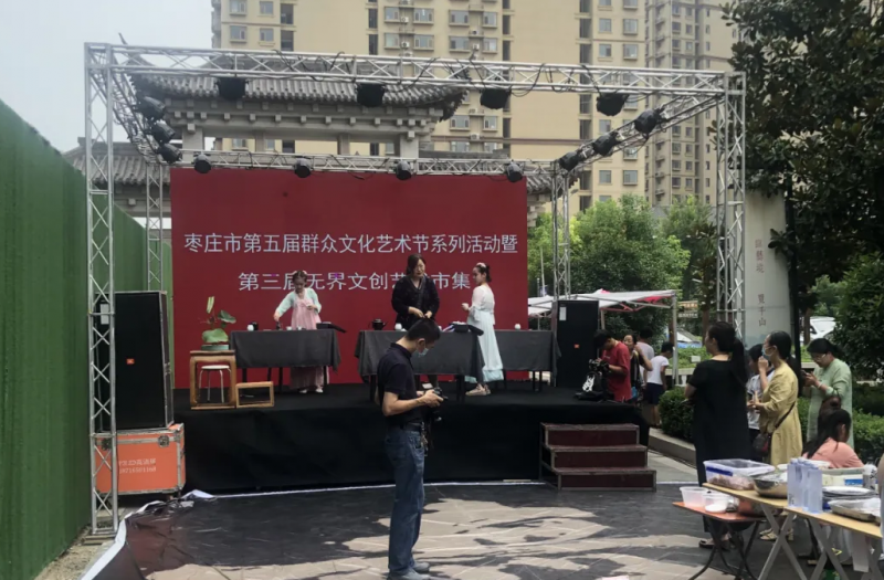 作為文化底蘊深厚的棗莊市老城區,第三屆無界文創藝術市集以非遺、傳統手藝、茶文化、手工創意等為主題元素,策劃組織戲曲、曲藝、雜技等系列文化主題活動,呈現市中“潮生活”夜景。一曲古老悠揚的鼓兒詞、一盤香氣噴鼻的辣子雞、一碗鮮香濃郁的羊肉湯隱藏在人氣爆棚的商圈里,人流如潮,接踵而至。吃飽喝足聽過癮,再陪伴家人一起來到葫蘆烙畫、蛋貼畫、糖畫、李氏布藝等非遺鋪前,感受市中文化,浸入古老時光。