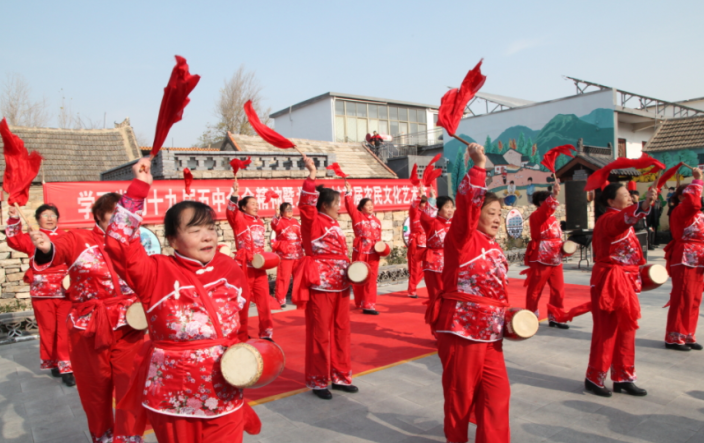 在當(dāng)天的文化藝術(shù)節(jié)里,全村40余名鄉(xiāng)村文藝人才精心編排了15個精彩節(jié)目,歡快的集體腰鼓、眼花繚亂的舞龍表演《中國龍》、接地氣的柳琴戲《喝面葉》《回娘家》、嗩吶經(jīng)典《百鳥朝鳳》《打虎上山》、山東快書《撲克迷》、好聽的的京劇名段《梨花頌》......鄉(xiāng)村表演者各顯身手,把北古石村變成鄉(xiāng)風(fēng)濃郁的藝術(shù)大舞臺,群眾齊聲叫好。
