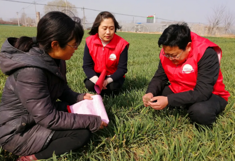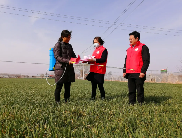 在麥田里,農技志愿者實地查看了麥苗長勢,并根據當前苗情指導群眾分類管理、促弱轉壯、防治病蟲、化學除草、防御凍害等工作。指導群眾年前未進行化學除草的盡快噴灑除草劑、麥苗發黃的及時追肥、墑情不足的及時澆灌以改善土壤,保苗穩健生長。