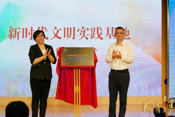 活動伊始,徐匯區(qū)委常委、宣傳部部長趙懿,上海市文明辦未成年人思想道德建設(shè)協(xié)調(diào)處處長王薇共同為徐匯區(qū)上海小學(xué)“新時代文明實踐基地”揭牌。