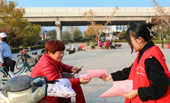 活動現場記者看到,“小紅土”志愿者們身穿紅馬甲,向群眾們分發宣傳資料的同時,講解全會精神中涉及群眾最關心的土地、產業、鄉村振興等話題,與他們深入淺出地交流,推動全會精神深入民心,更好地凝聚奮進力量。