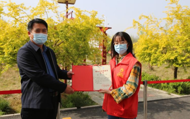 4月14日,滕州市鮑溝鎮黨委副書記、政協聯絡室主任張開強到壩前村疫情防疫點為志愿者趙一帆頒發志愿服務證書,表彰她對疫情防控工作的積極貢獻。