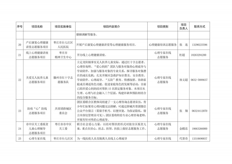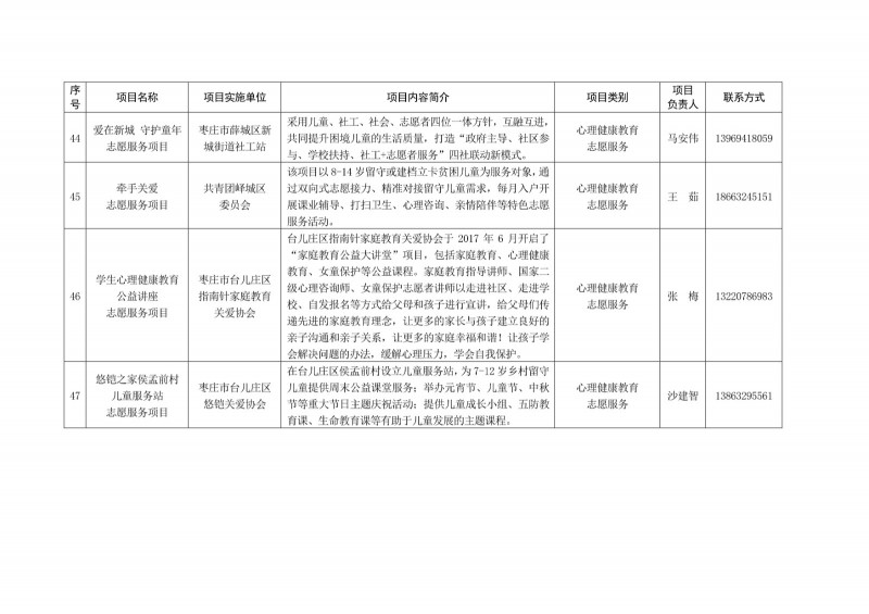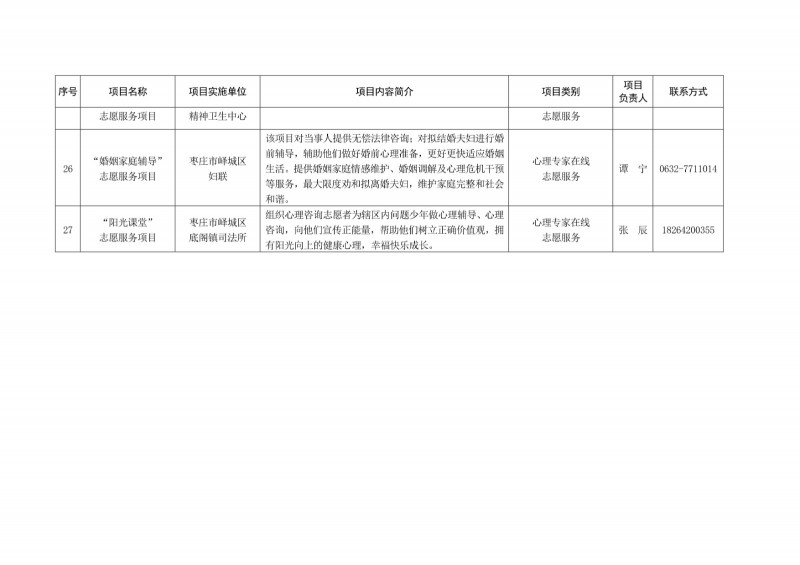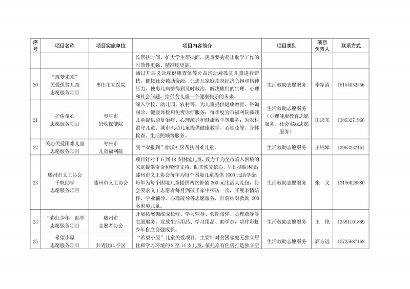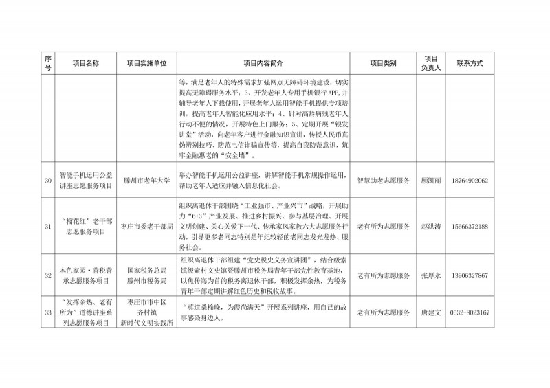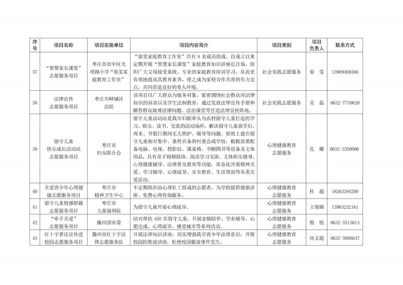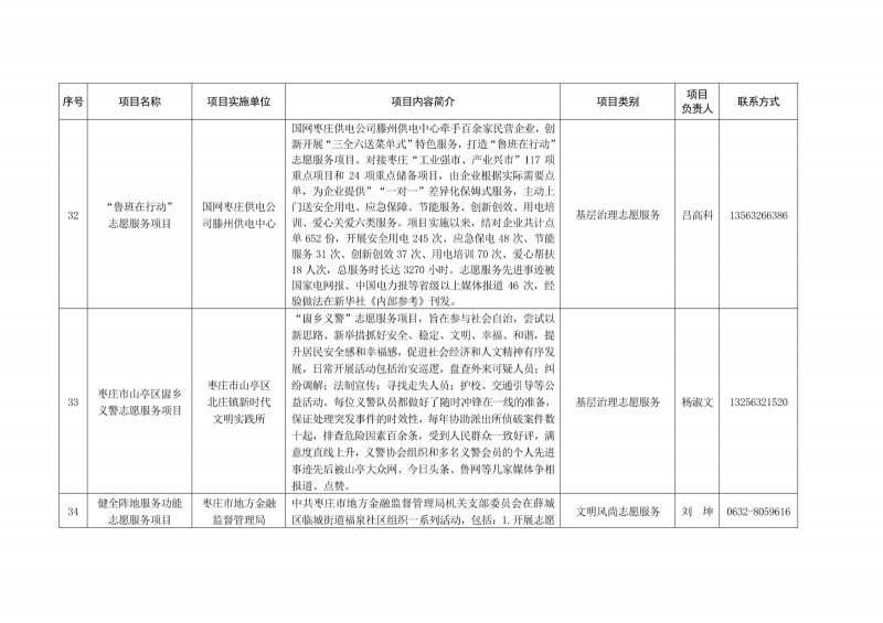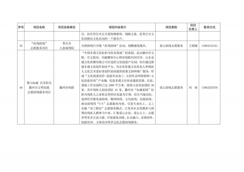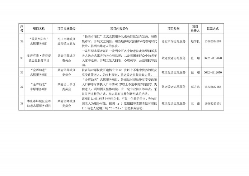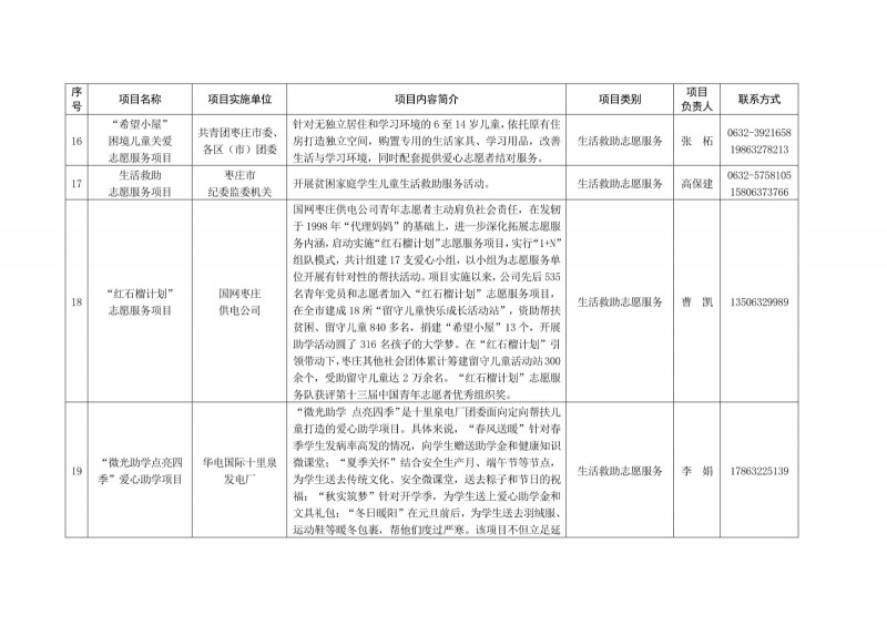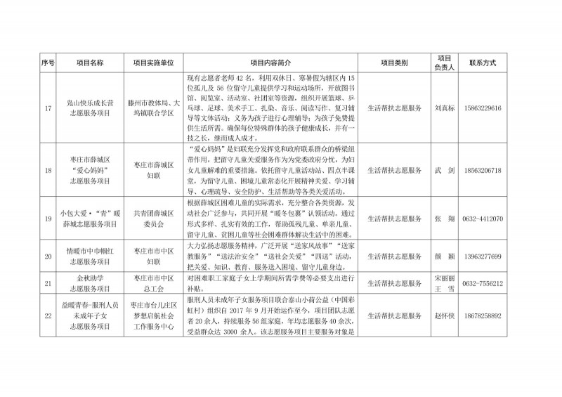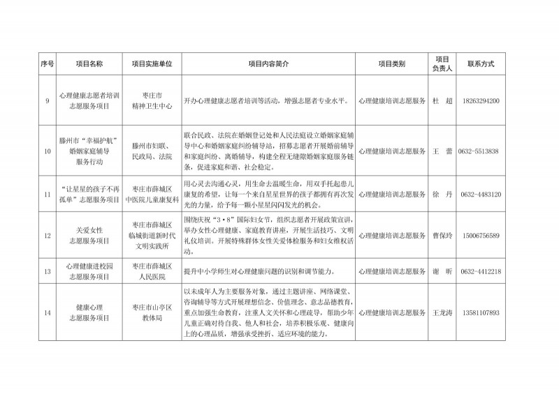 為進一步深化“五為”文明實踐志愿服務,推動文明實踐志愿服務有效供給、精準服務,棗莊市文明辦面向全市廣泛征集志愿服務項目,現挑選主題突出、特色鮮明、運行良好的200個重點志愿服務項目,向社會公開發布,有需求的群體和個人可與相應項目負責人聯系,各項目實施單位將積極為大家提供服務,歡迎廣大志愿者踴躍參與“五為”文明實踐志愿服務活動,共同樹立文明棗莊新風尚。