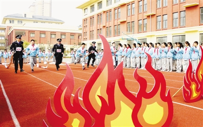 棗莊三中市中校區舉行消防安全逃生和滅火演練活動