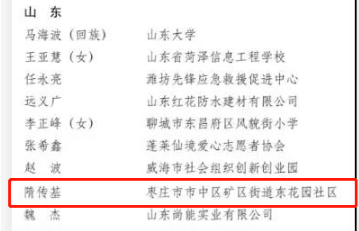 其中,棗莊市市中區礦區街道東花園社區隋傳基入選。