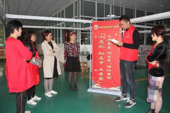 “1921年中國共產黨成立,是中國歷史上開天辟地的大事……”志愿者從中國共產黨成立到新中國成立,再到改革開放至今,分階段為大家講述了中國共產黨發展的歷史進程,生動再現了革命先烈們不折不撓、寧死不屈的革命精神。宣講志愿者詳細講述了黨旗的誕生歷程及使用條例,進一步加深了企業職工對黨旗的認識。通過宣講,進一步增強黨史學習教育的針對性和實用性,讓廣大企業員工在黨史學習教育的過程中更加堅定理想信念、汲取智慧力量。