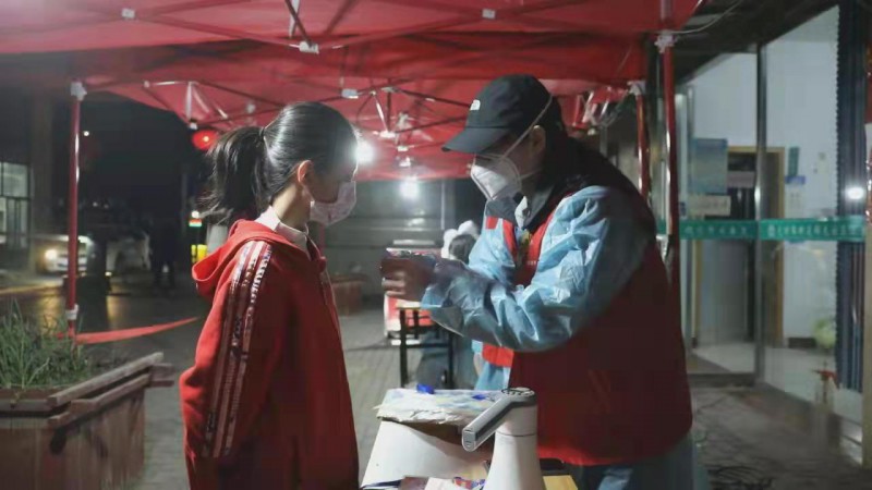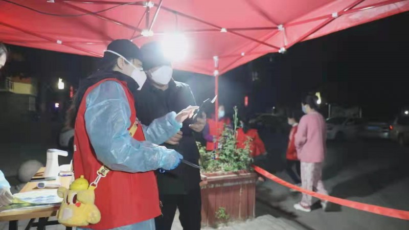 堅守一線,共克時艱。在市中區文化路街道龍頭社區,從第二輪到第四輪全員核酸檢測,市市場監管綜合服務中心所屬食品藥品檢驗檢測中心近30名志愿者在宋洪春主任的帶領下,始終活躍在核酸檢測站點,他們分成5個小組,從早7點到晚10點一直輪崗堅守在現場,穿著防護服、戴著手套,與醫務人員、社區工作者并肩作戰,主動幫助排隊檢測的社區居民保持安全距離、引導居民佩戴口罩、維護現場秩序、協助測溫亮碼、幫助老年人注冊登記生成采樣二維碼等,對有需要的居民提供“一對一”暖心服務,配合醫護人員高效率完成核酸采集,確保核酸檢測工作應檢盡檢,群防群控落細落實。